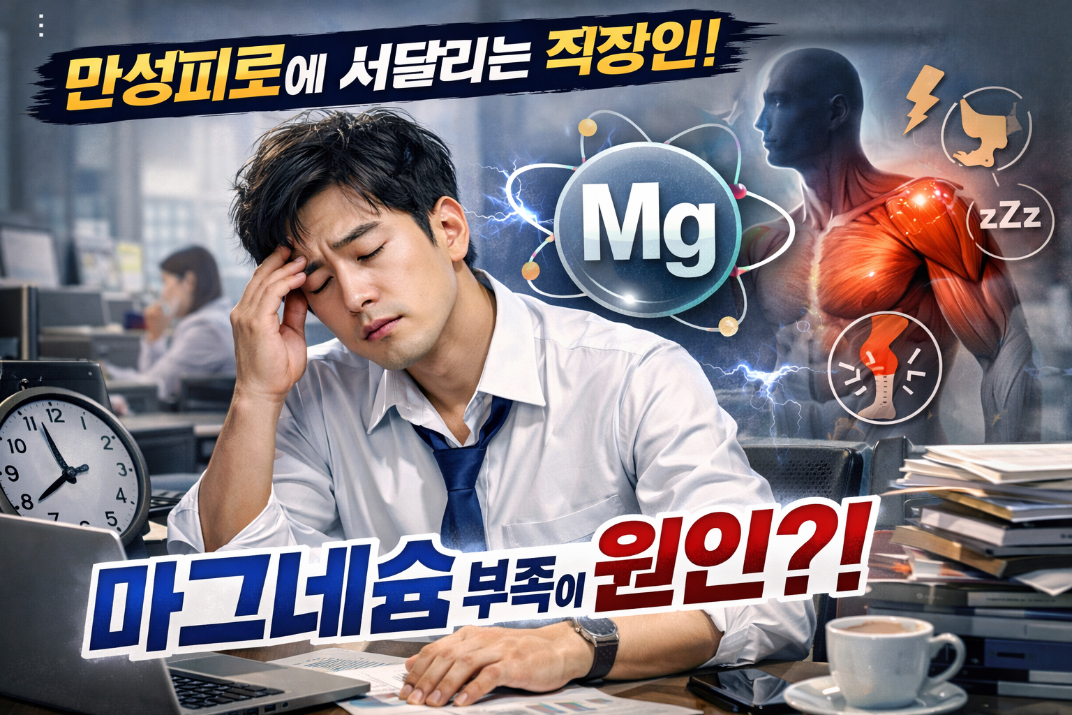 "눈 밑이 파르르 떨리거나, 자려고 누웠는데 근육이 긴장되어 잠이 오지 않나요? 몸이 보내는 마그네슘 고갈 신호입니다."